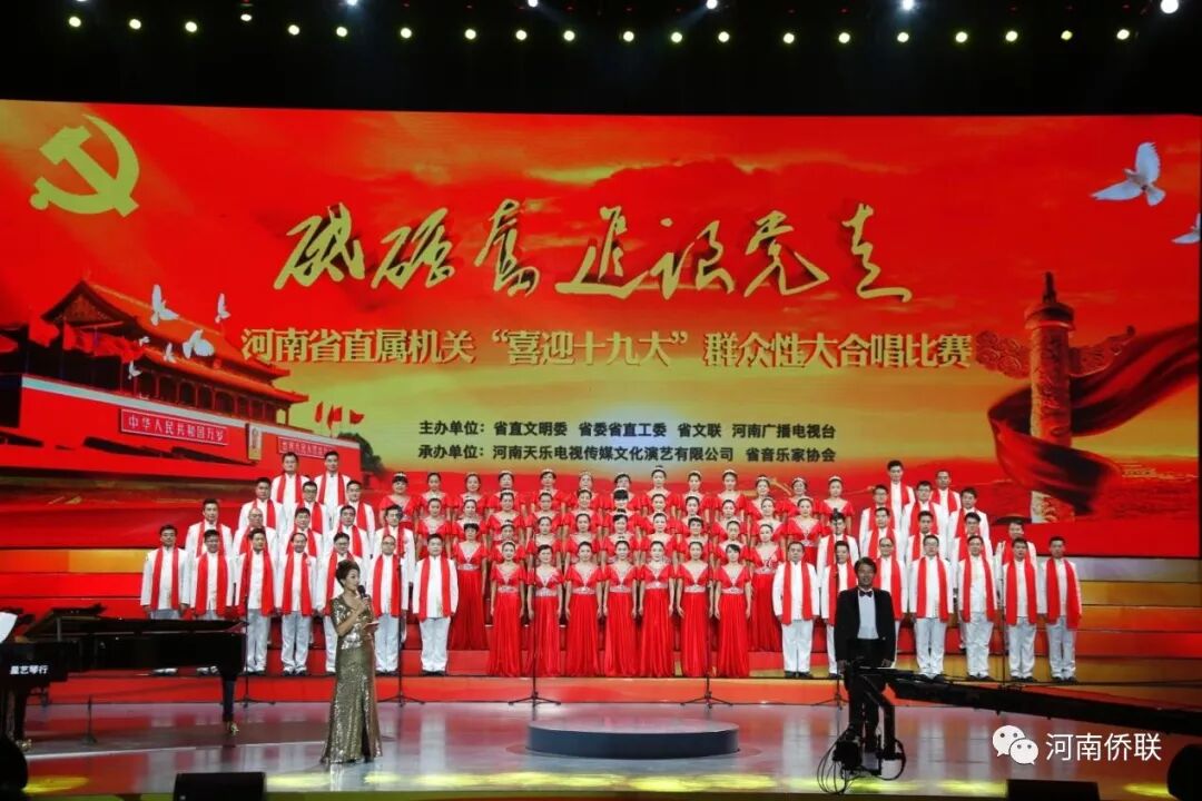 由侨界群众、侨联工作者组成的河南省侨联合唱团在省直机关“喜迎十九大”群众性合唱比赛现场