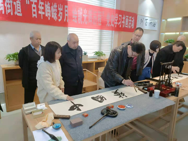 为弘扬红色精神,传承中华优秀传统文化,引导侨胞侨眷和群众更好地了解党史、学习党史、爱党爱国,让党史学习教育不断地推向深入,2021年4月7日上午,洛阳市老城区侨联联合西北隅街道开展“百年峥嵘岁月 绘就光辉历程”党史学习书画活动,老城区侨联顾问、中国书法家协会会员孙玮珂老师和部分书画爱好者参加了活动,孙老师在现场写下“不忘初心”、“中国梦”等作品,并表示,这个活动不一般,我们大家既能在“横竖撇捺”中领略家国情怀,还可以通过书法作品,展现出对党的热爱和感恩。