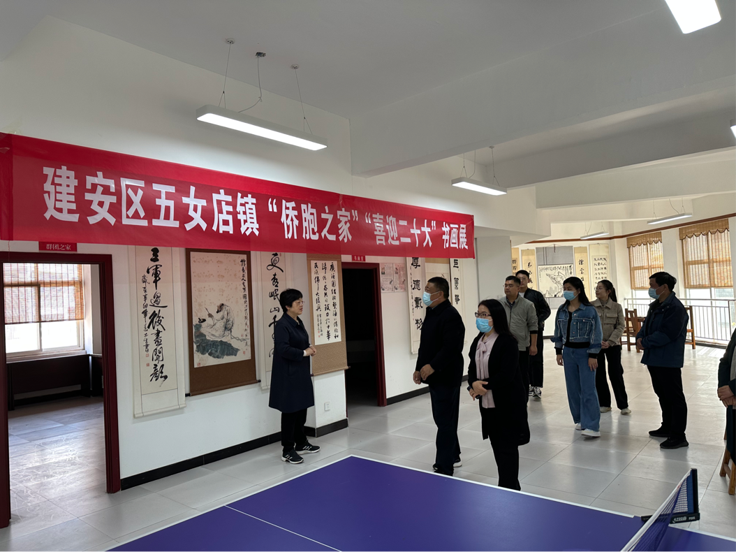10月12日,建安区五女店镇“侨胞之家”组织开展“喜迎二十大”书画展活动。区委统战部副部长刘喜红、区侨联主席吴双丽参加活动。