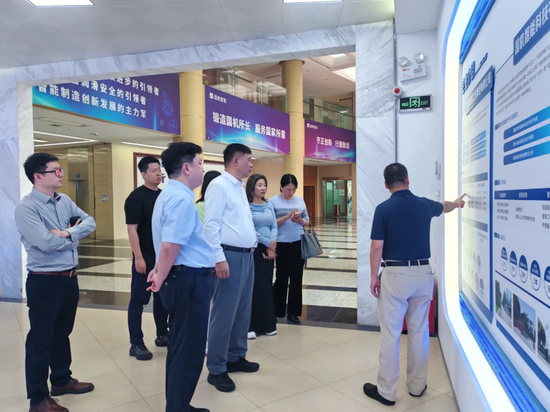 考察团在相关负责人的陪同下,先后参观了国机智能的企业展厅与先进实验室,全面了解了国机集团的发展历程、核心主业布局以及在科技创新领域取得的丰硕成果。