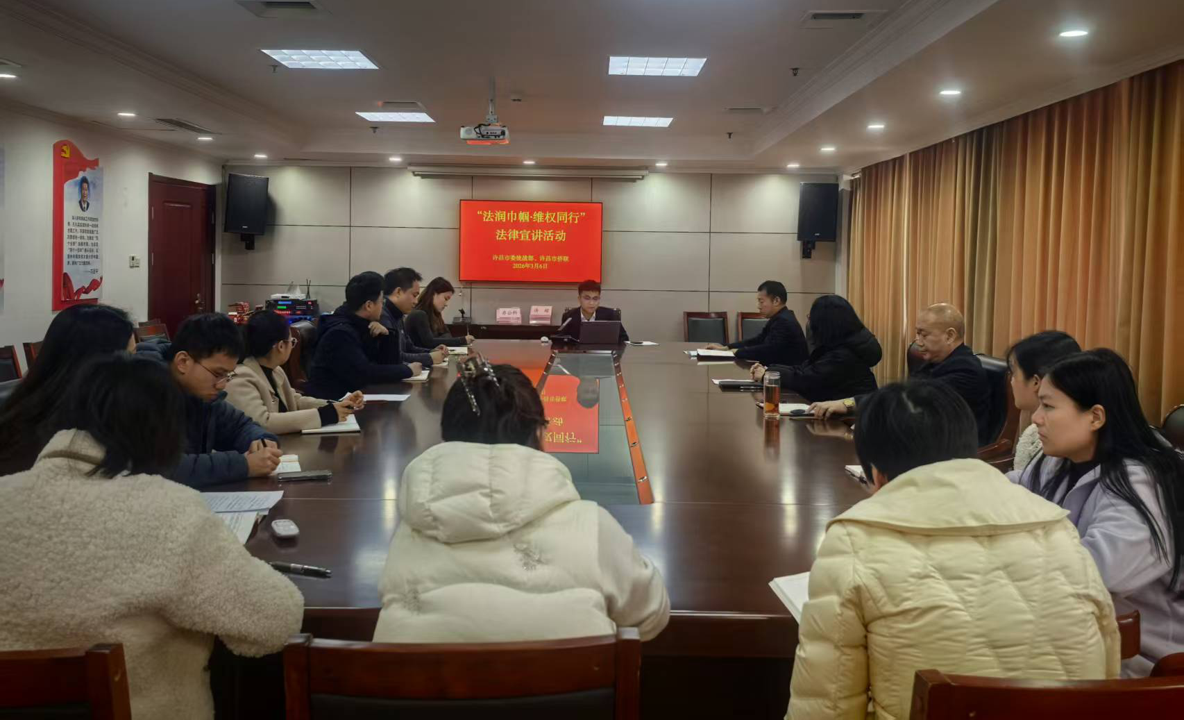 为进一步深化法治宣传教育,提升党员干部运用法治思维和法治方式服务群众、推动发展的能力,特别是在维护妇女儿童合法权益方面的专业素养,在“三八”国际妇女节来临之际,3月6日,许昌市委统战部与市侨联共同举办了“法润巾帼·维权同行”专题法律宣讲活动。活动特邀市侨联法律顾问、河南文丰(许昌)律师事务所刘星辰律师作专题讲座。市委统战部、市侨联的党员干部参加学习。
